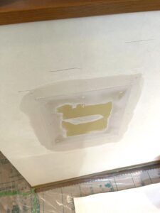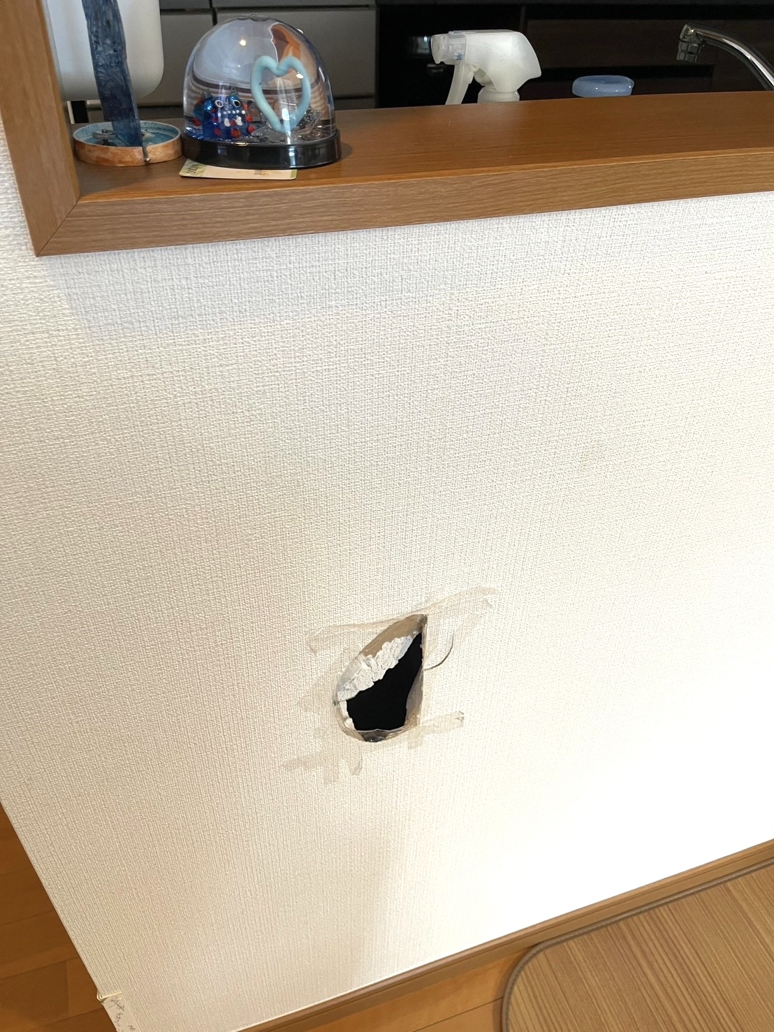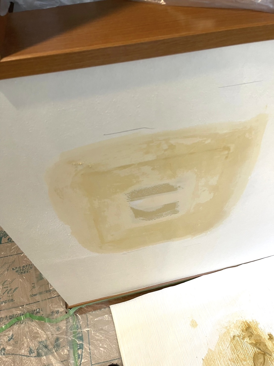 穴が大きく奥が深いので、しっかり土台を作って壁紙がフカフカ沈まないようにしていきます!