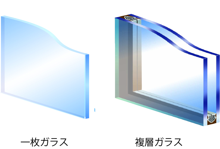 ペアガラスとは、2枚のガラスの間に密封された空気層またはガスが封入されている